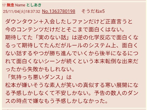 | … | 125無念Nameとしあき25/11/05(水)01:48:27No.1363877899+>吉本じゃないからどうでもいいんでしょ |