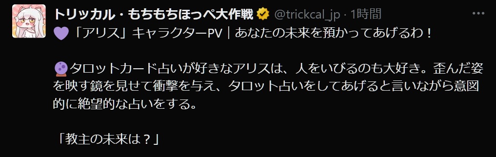 | … | 6無念Nameとしあき25/11/04(火)21:34:49 ID:1z68TN9ANo.1363827895+アリスのPVバターの方が印象に残るにゃん |