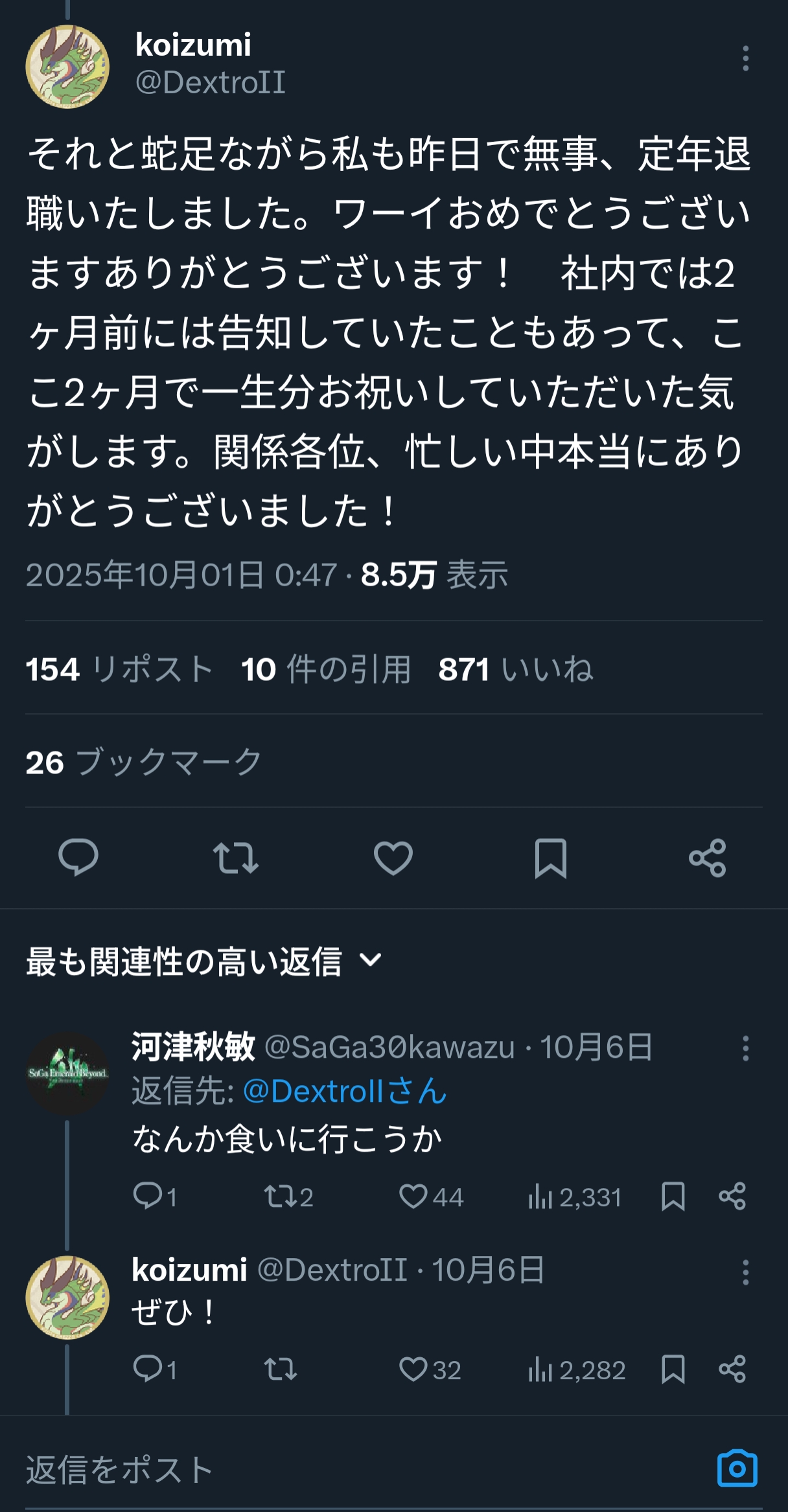 | … | 7無念Nameとしあき25/11/04(火)22:41:25No.1363846169+スクエニ退職後もサガのイベントとかにも参加しているが |