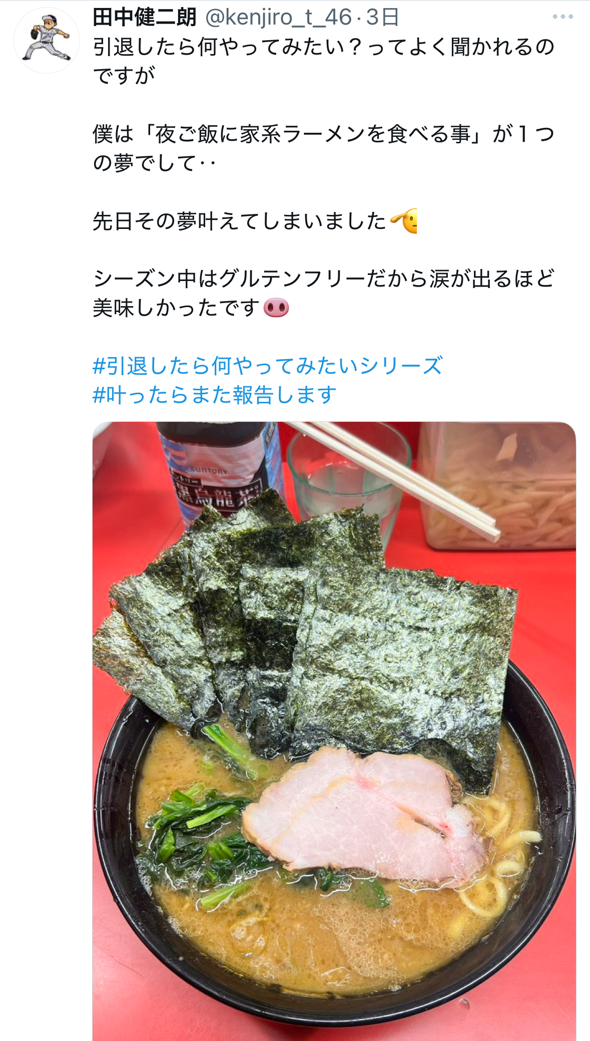 | … | 71無念Nameとしあき25/11/05(水)08:04:45No.1363895397+>タナケンが夜ご飯に家系ラーメン食べて泣いてたグラン |
