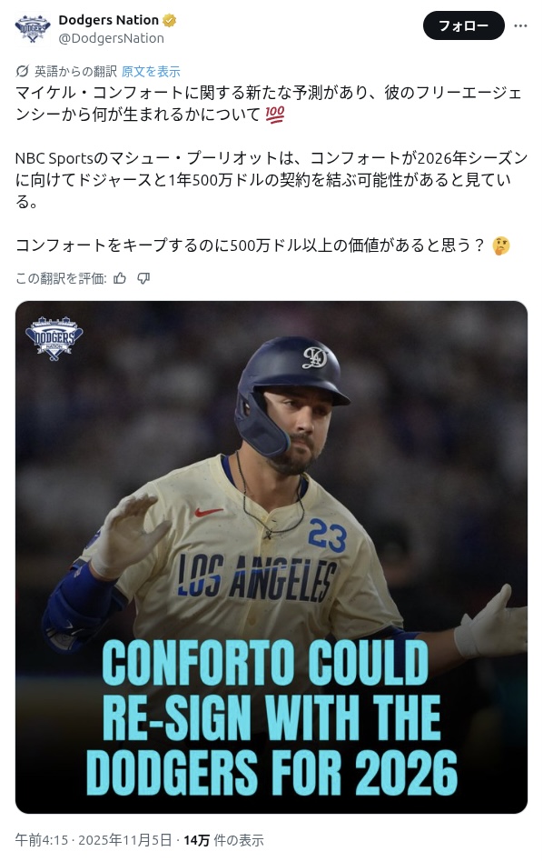 | … | 7無念Nameとしあき25/11/05(水)05:21:23No.1363886480+全ての日本人選手はドジャースに集え |