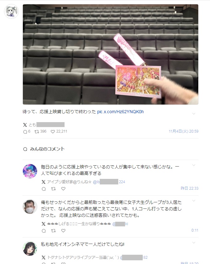 | … | 68無念Nameとしあき25/11/06(木)14:58:54No.1364171708そうだねx1>今は人気映画でもこうなってるというご時世だし… |