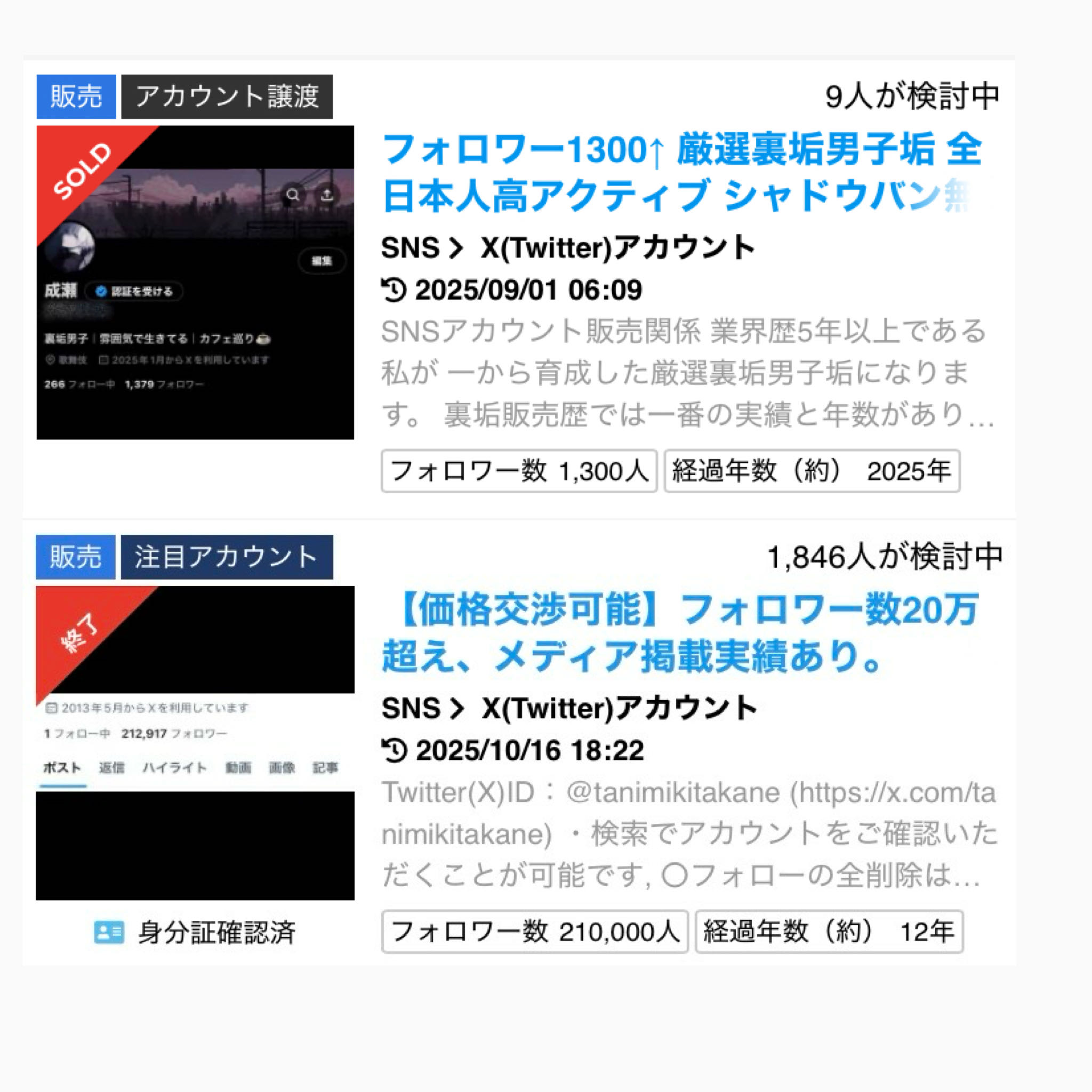 | … | 27無念Nameとしあき sage25/11/06(木)20:53:39 IP:153.231.*(ocn.ne.jp)No.1364249408そうだねx2>明らかにXに通報済みでいつBANされるかもわからん垢なんて誰が買うんや? |