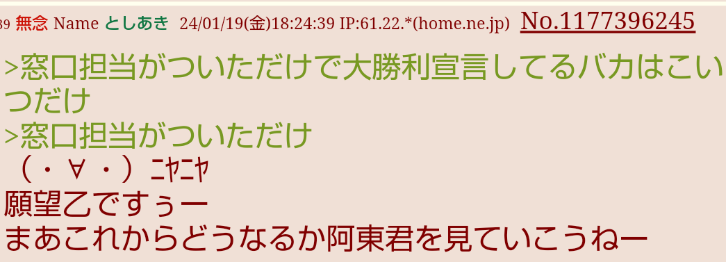 | … | 401無念Nameとしあき sage25/11/07(金)06:10:41 IP:153.176.*(ocn.ne.jp)No.1364319814+泣き言くん勝ったことにしたいからか |