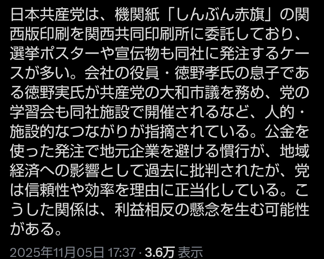 | … | 62無念Nameとしあき25/11/06(木)22:13:59No.1364271626そうだねx15共産もおんなじことやってるんだけど赤旗は報道しないの…? |