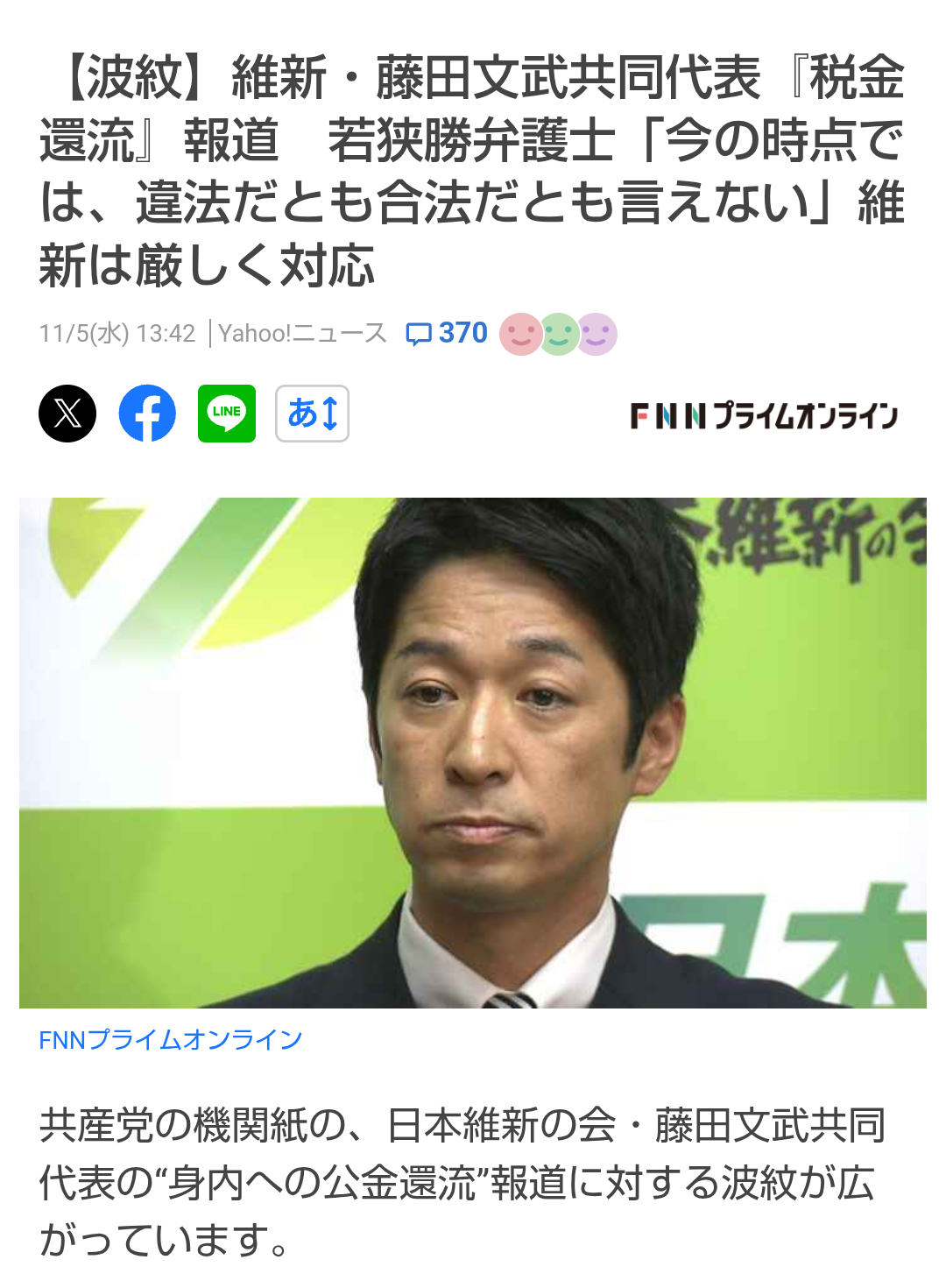 | … | 838無念Nameとしあき25/11/07(金)07:49:09No.1364325848そうだねx1 1762469349595.jpg-(55108 B) >潰しもなにも維新の身から出た錆なんだが |