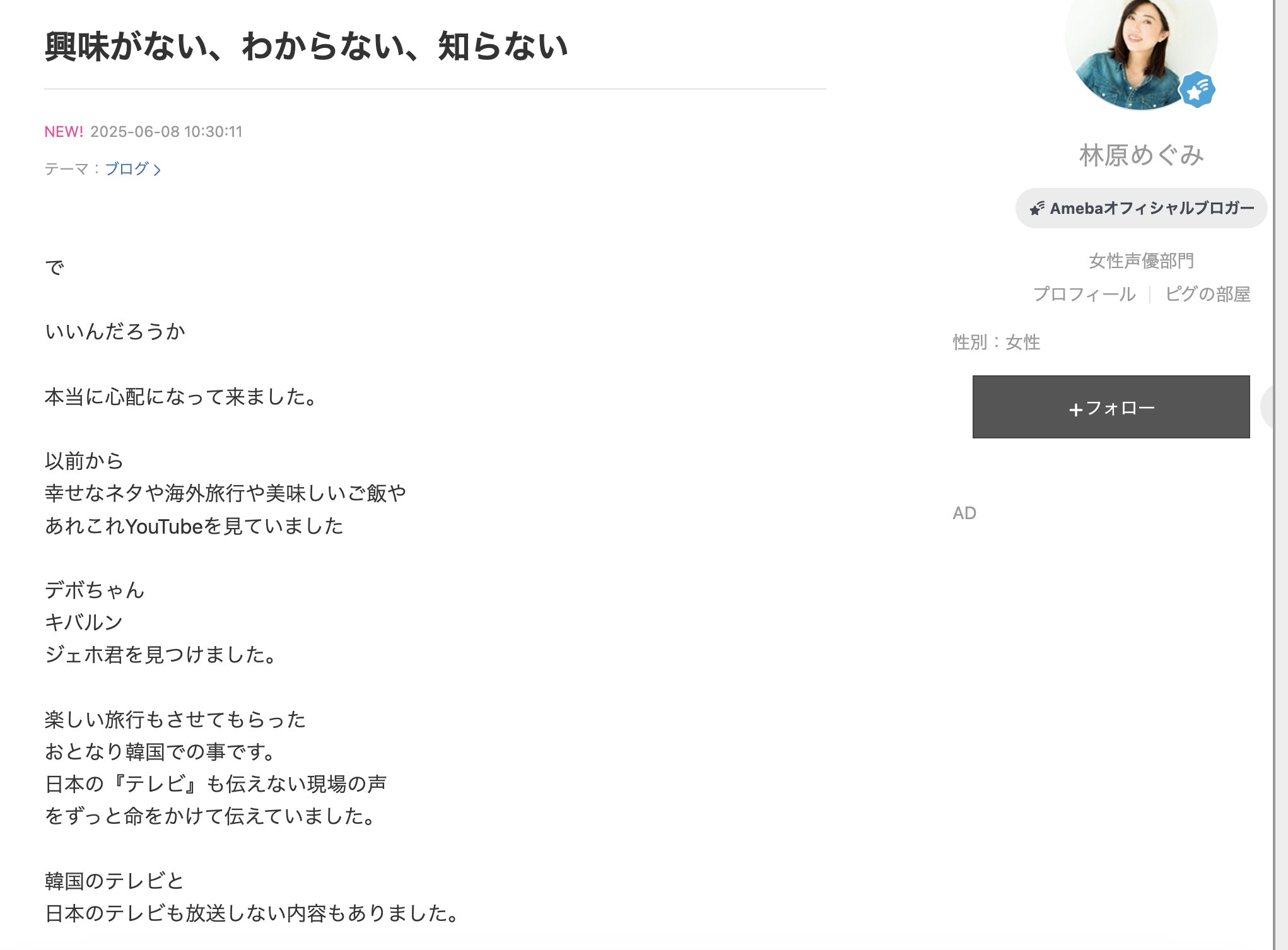| … | 37無念Nameとしあき25/11/07(金)07:03:51No.1364322407そうだねx3>林原もブログの内容というより右派系韓国人youtuberに言及したのが猛烈に叩かれた理由だろうな |
