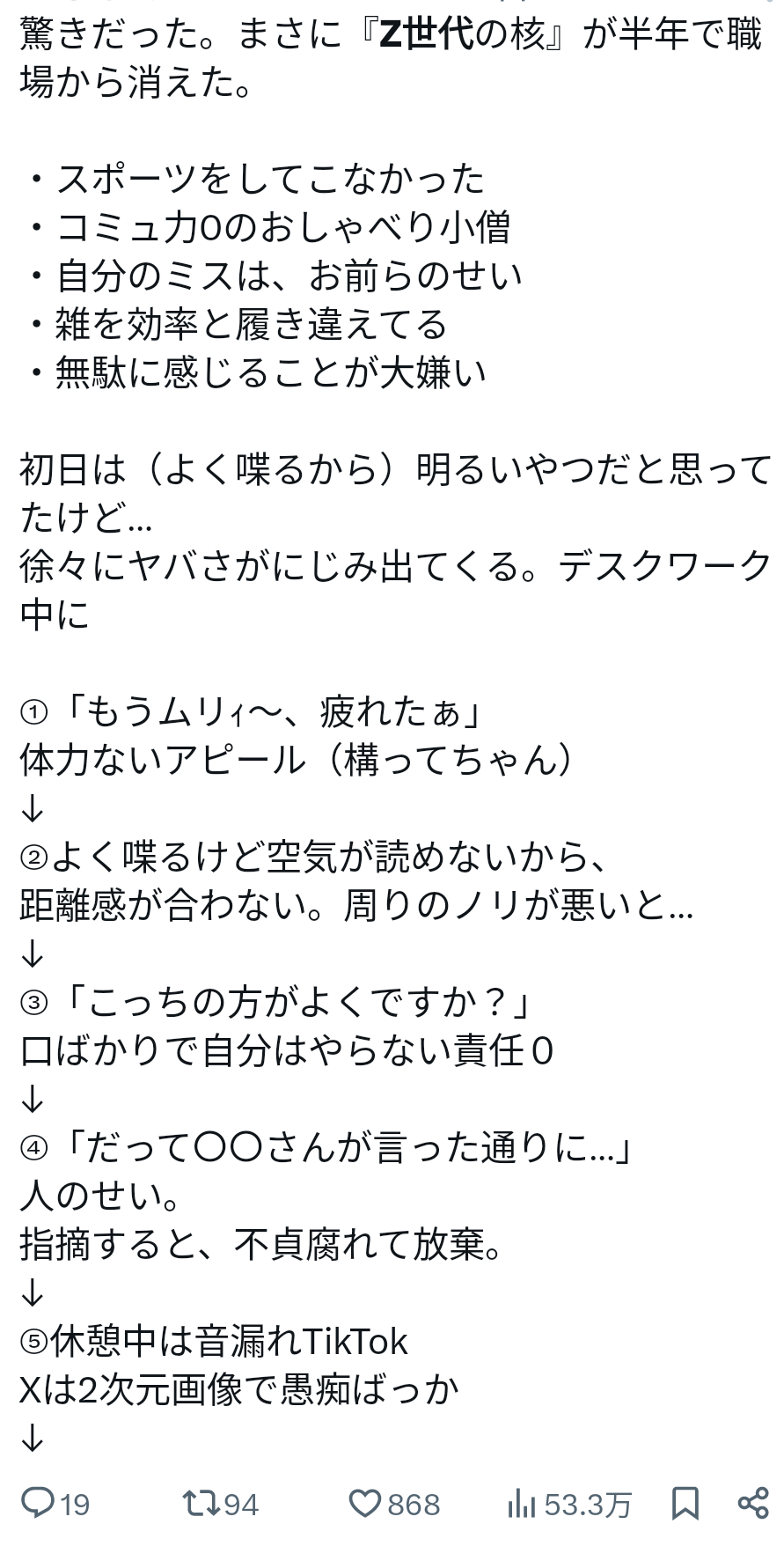 | … | 54無念Nameとしあき25/11/07(金)14:19:33No.1364381386+Z世代「指摘=関係が壊れる予兆」 |