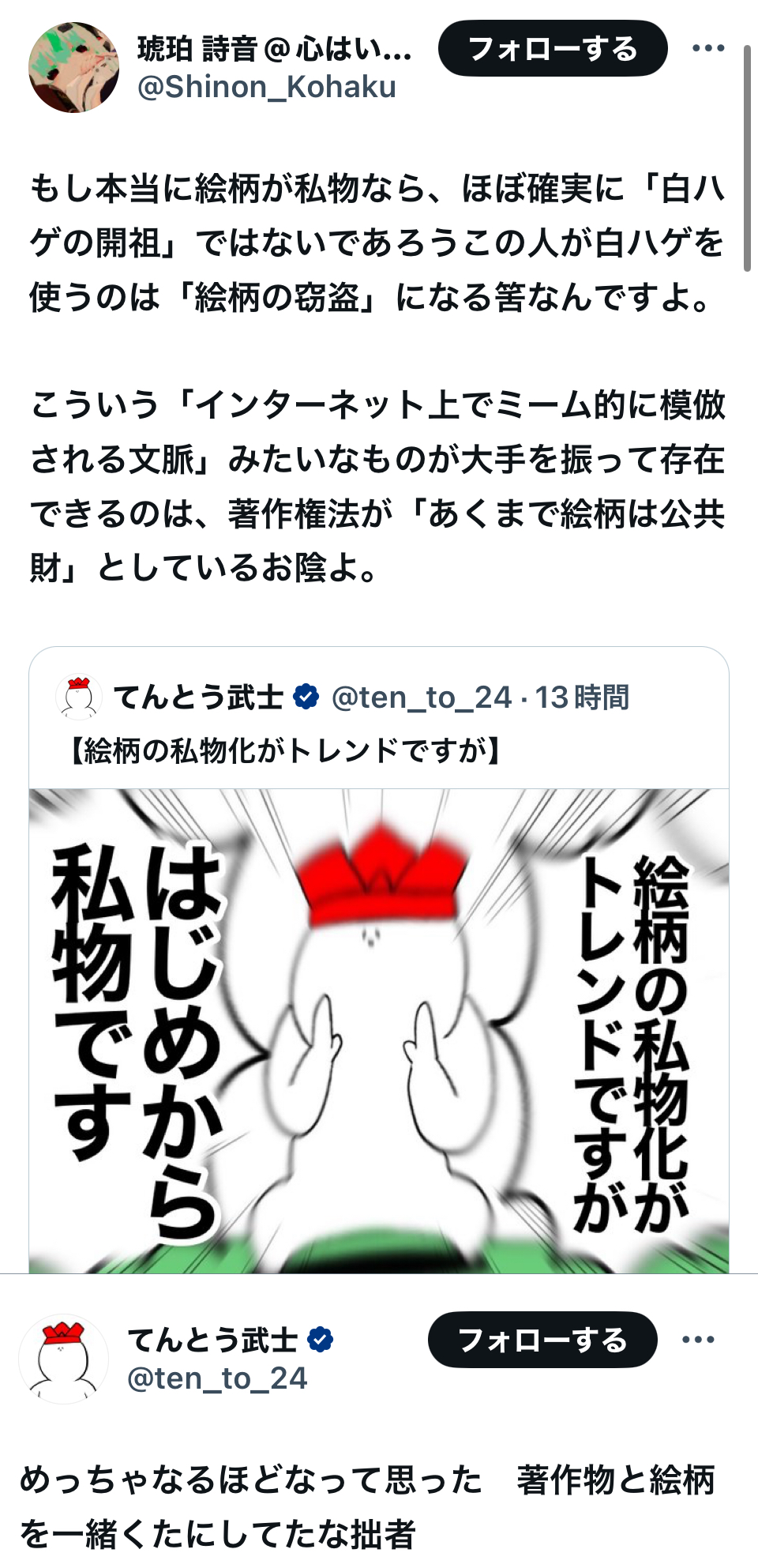 | … | 931無念Nameとしあき25/11/07(金)16:30:09No.1364400954+創作性とインターネットお絵かきマンがいうオリジナリティは違うものだという認識が欠如している |