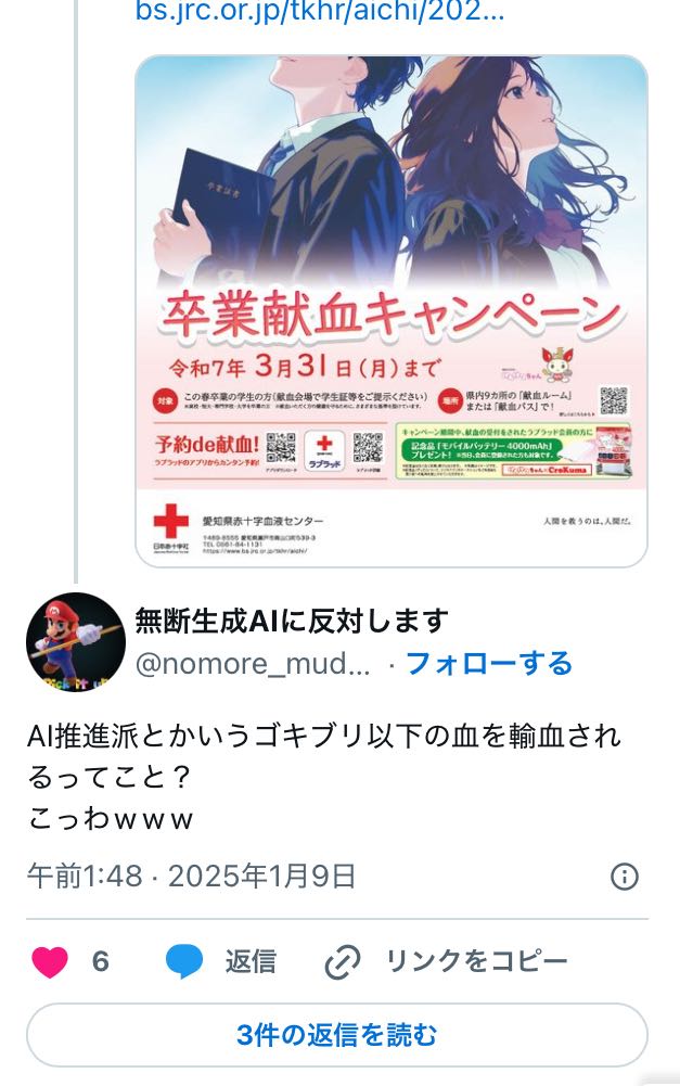| … | 17無念Nameとしあき25/11/07(金)09:56:03No.1364339689そうだねx4反AIがバカというのが世間のまともな人たちに知れ渡るので良いと思うよ |