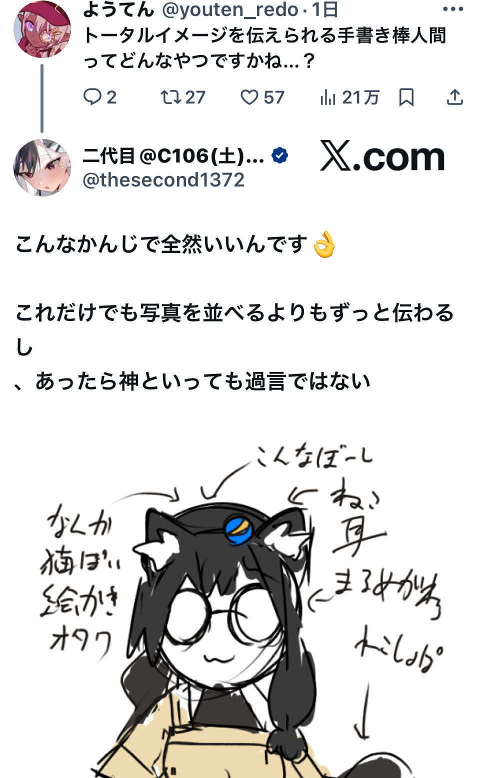 | … | 966無念Nameとしあき25/11/07(金)16:41:25No.1364402774+絵が創作かどうかなんて見る側にとってはどうでもいい話なんだよな |