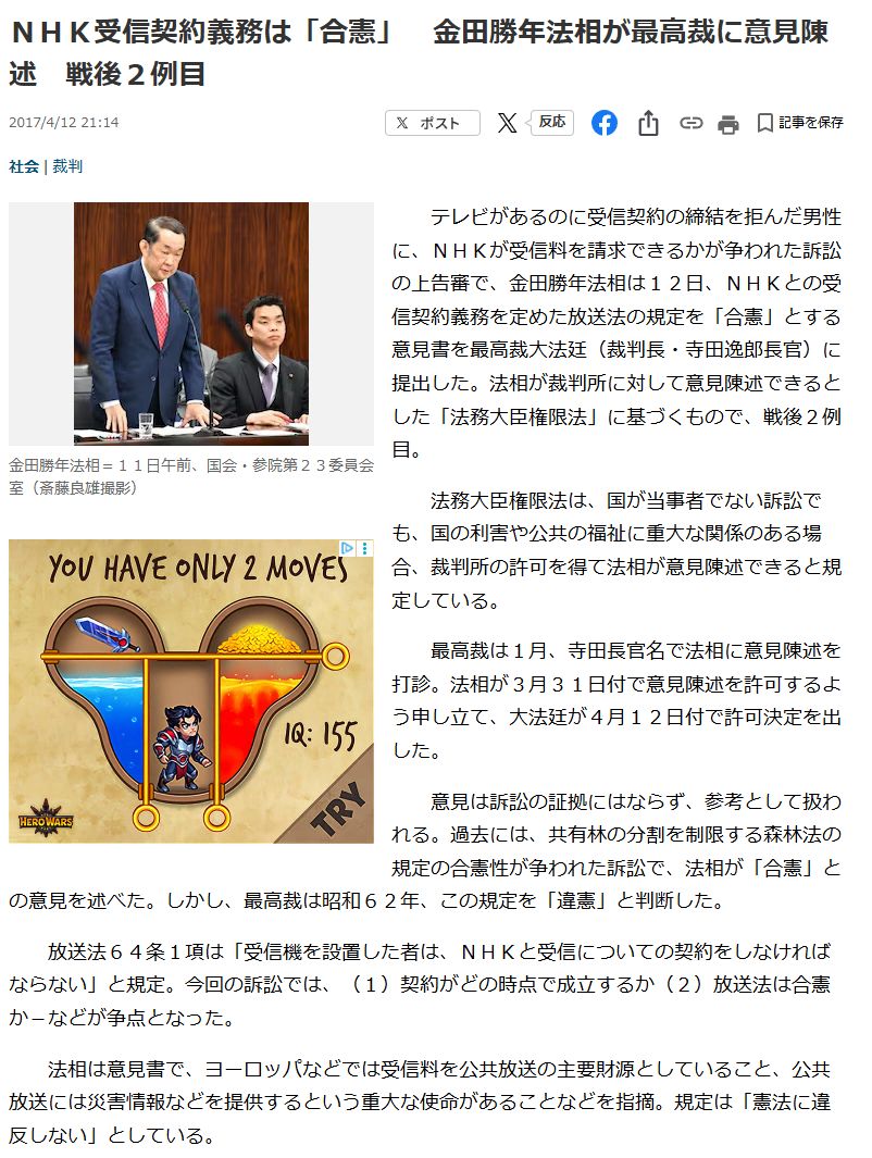 | … | 156無念Nameとしあき25/11/07(金)12:10:10No.1364358587+受信料は合憲という判例は出ちまってるんよな |