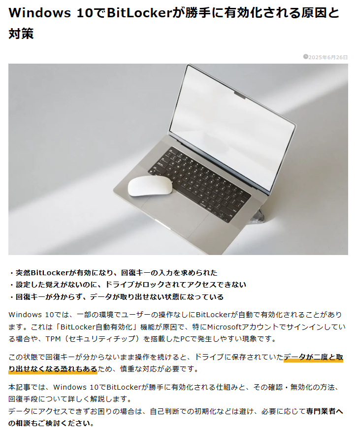 | … | 364無念Nameとしあき25/11/07(金)20:07:57No.1364449095+>Bitlockerって勝手にオンになる場合があるから |