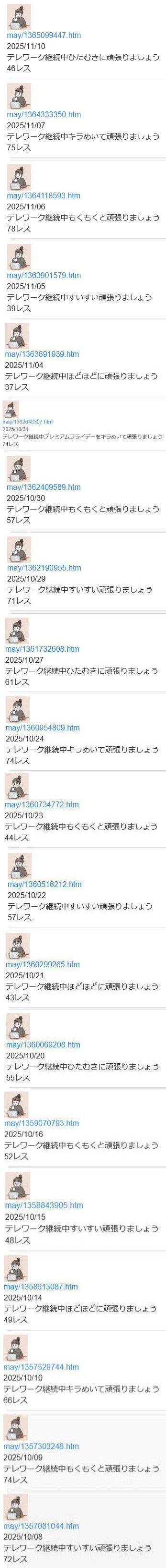 テレワーク継続中このスレは古いので、もうすぐ消えます。