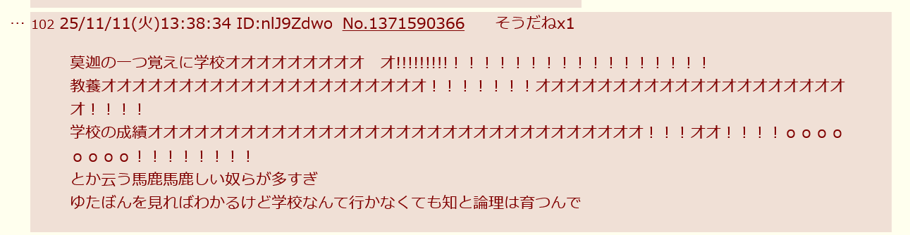 | … | 92無念Nameとしあき25/11/11(火)14:47:41No.1365363928そうだねx1>学校の成績オオオオオオオオオオってなんだ… |