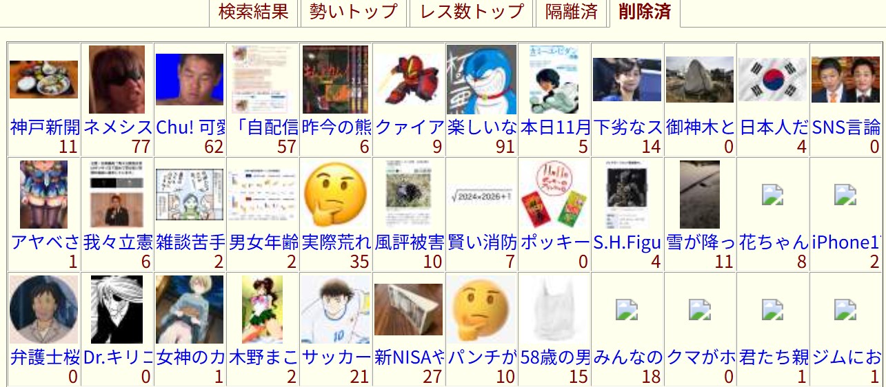 | … | 19無念Nameとしあき25/11/11(火)14:15:39No.1365359506+隔離覧のはそのまま残ってるのが多いかも |