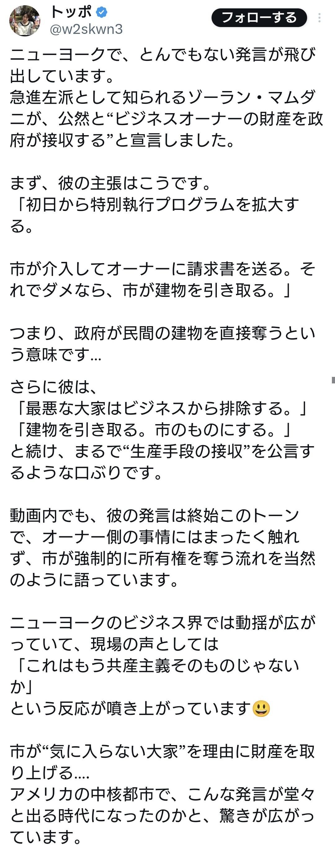 | … | 11無念Nameとしあき25/11/12(水)00:08:40No.1365492644そうだねx5アメリカ中の移民がみんなニューヨークに集まればいいのか |
