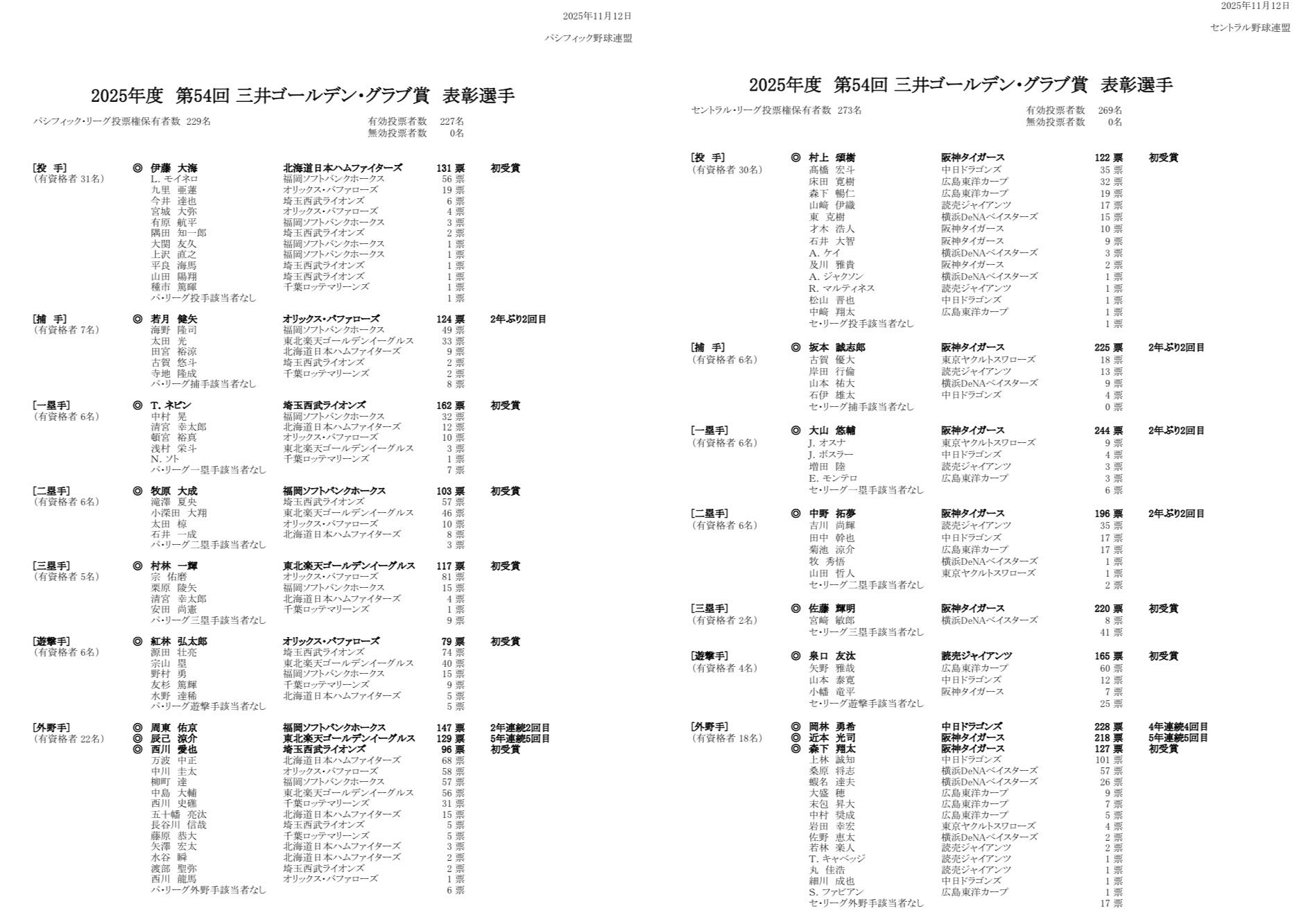 | … | 62無念Nameとしあき25/11/12(水)17:50:52No.1365619158+なんでセパの投票記者数隔たりがあるもん? |