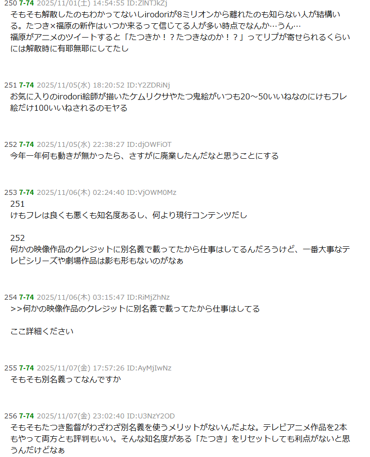 | … | 902無念Nameとしあき25/11/12(水)22:53:53No.1365701309+福原元Pってたつき監督のファンに結構強い言葉でもうこの件には触れるなキモオタって感じで突っ返してたはずだけどいまだに拠り所にされてるのはなんでなんだろうか |
