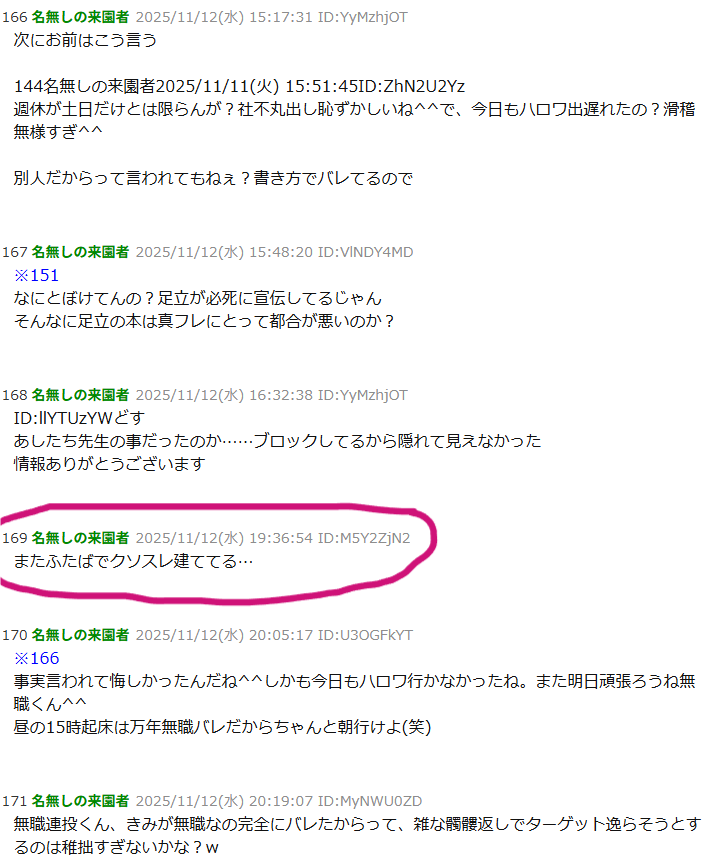 | … | 827無念Nameとしあき25/11/12(水)22:35:15No.1365696348そうだねx9>たつき粘着してもスレあきは就職できねーよ |