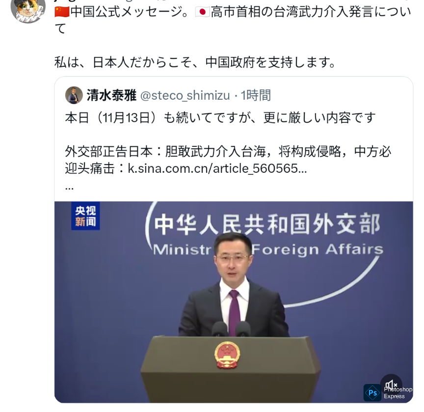 | … | 51無念Nameとしあき25/11/13(木)20:18:38No.1365876636そうだねx8>速報出てたけど明日には台湾発言撤回して正式に中国に謝罪するそうね |