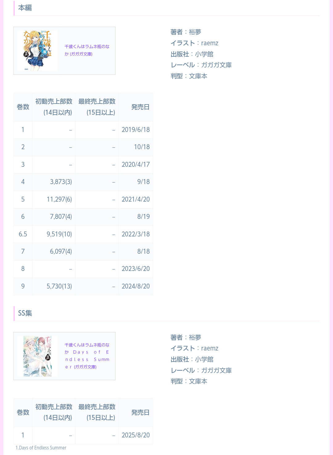 | … | 238無念Nameとしあき25/11/14(金)16:06:47No.1366045451+>りゅうおうのおしごとはアニメ化した時にラノベが5巻までアンリミで読めたけどチラムネはアニメ放送中の分際で1巻までしか読めないんだよな |