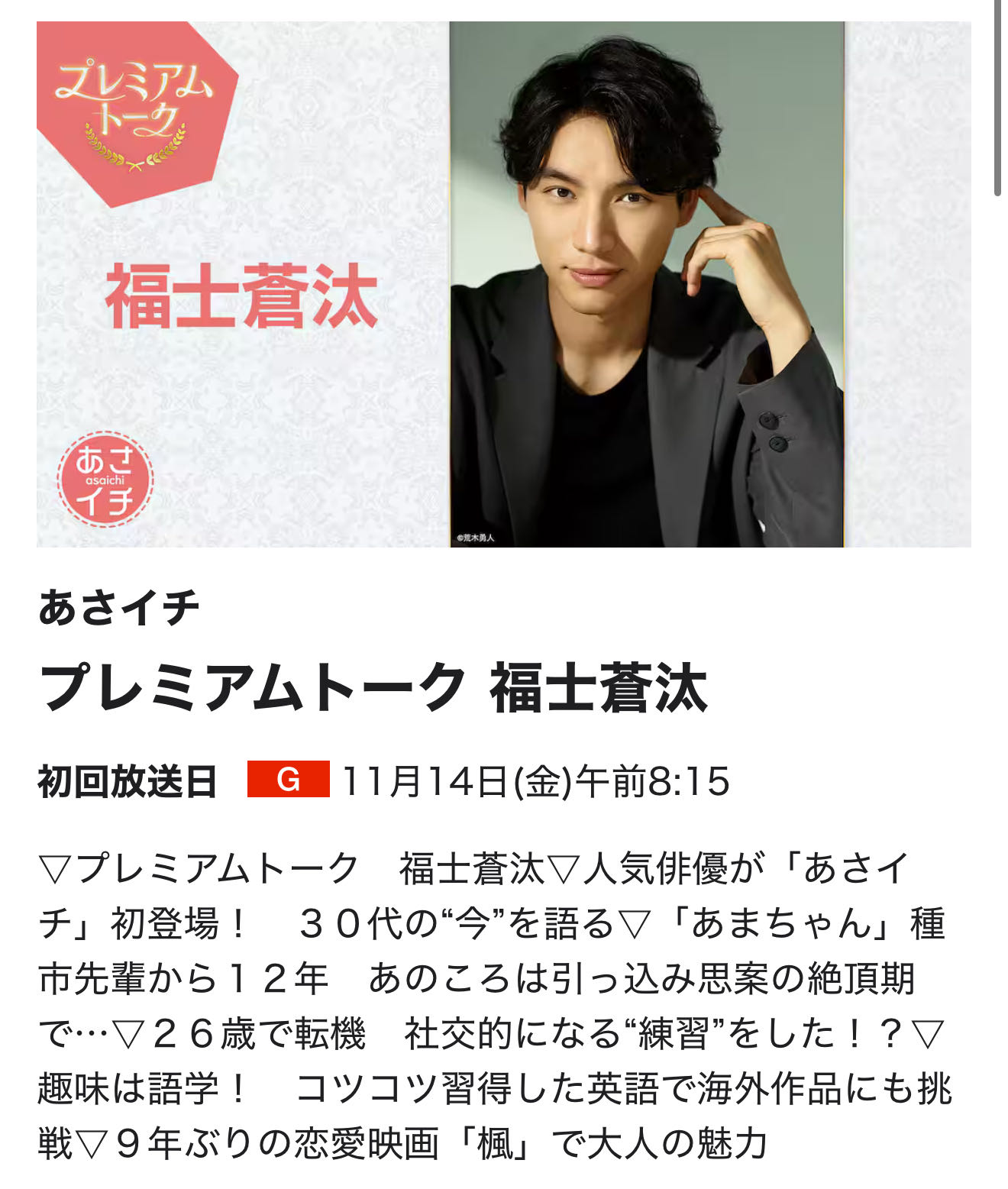 | … | 14無念Nameとしあき25/11/14(金)08:01:15No.1365972620そうだねx3>プレミアムトークは福士蒼汰 |