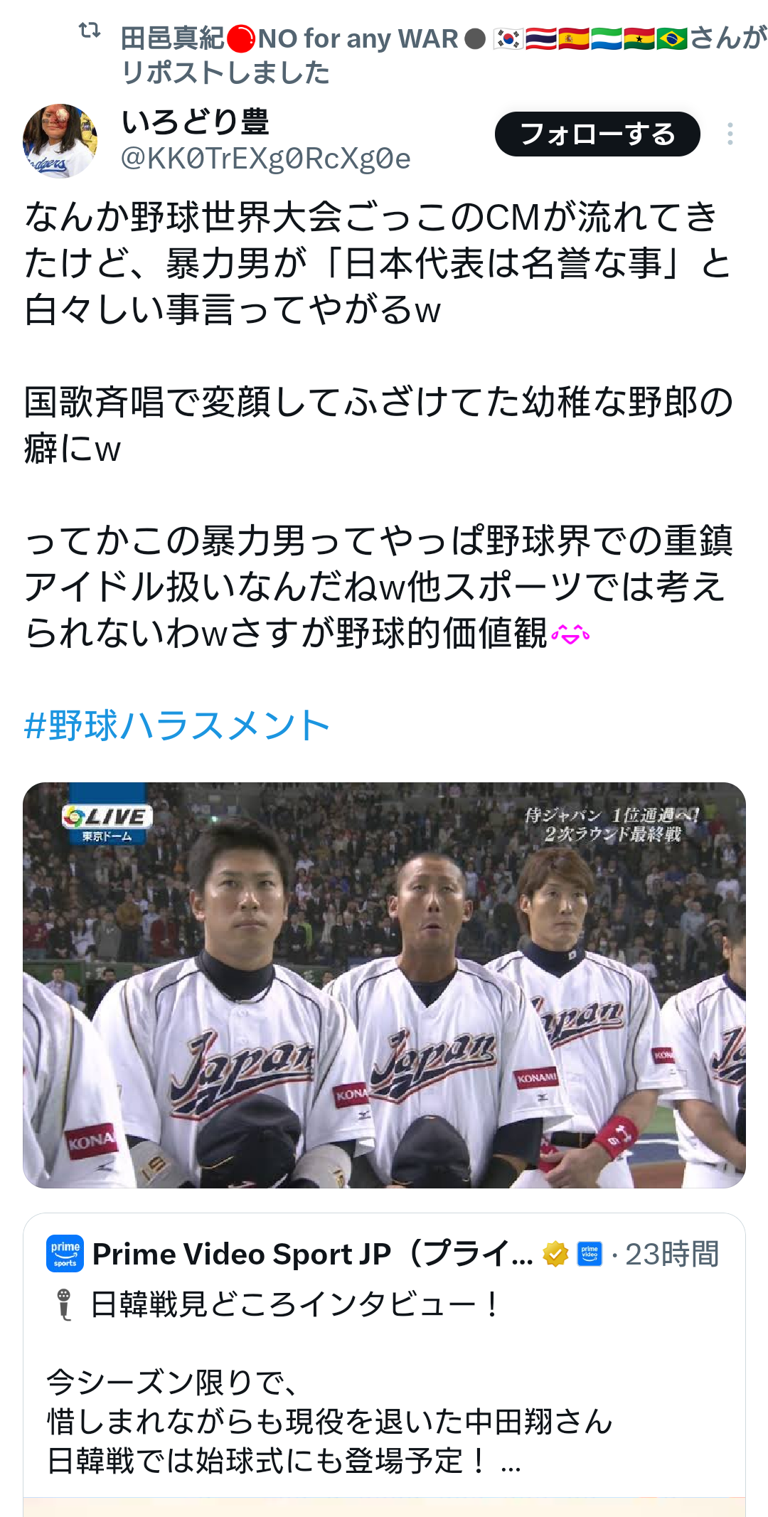 | … | 677無念Nameとしあき25/11/14(金)15:59:35No.1366044267+アメリカはジャッジとかも出るんだよねWBC |