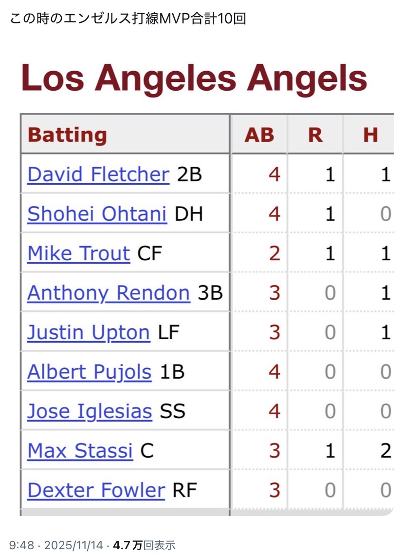 | … | 763無念Nameとしあき25/11/14(金)18:10:14No.1366066697+なんかここ最近日ハムはじめとしたNPBやエンゼルス見下す連中多くね? |