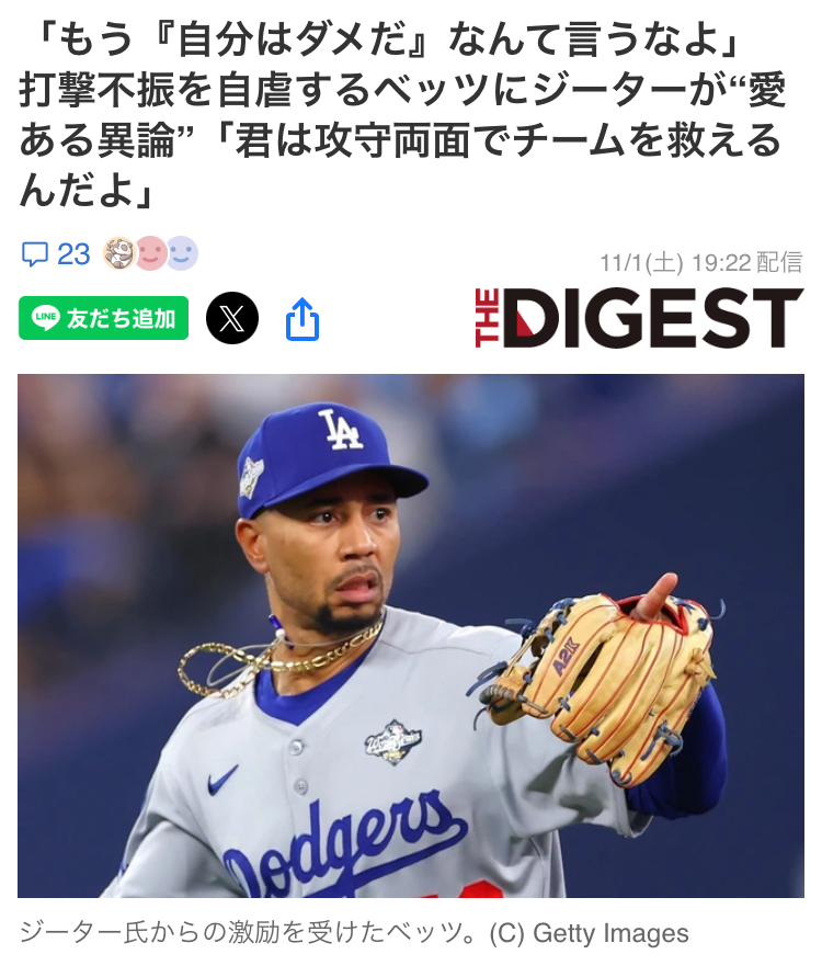 | … | 767無念Nameとしあき25/11/14(金)18:16:33No.1366068061+>いきなりドジャース行ってたら全く違う野球人生だったろう |