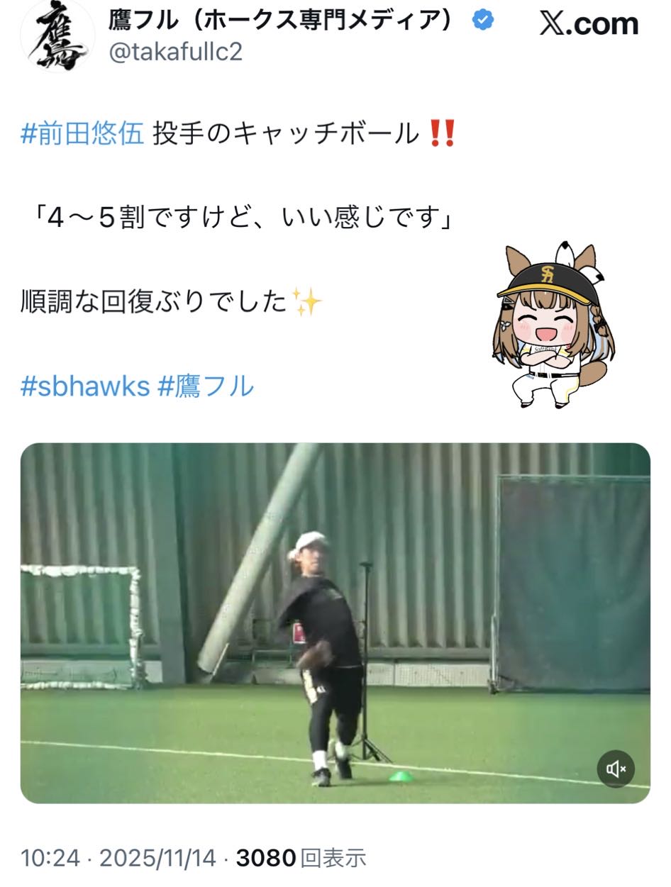 | … | 51無念Nameとしあき25/11/14(金)11:35:06 ID:YLqi7Ux6No.1365999449そうだねx4 1763087706918.jpg-(97544 B) クリーニング手術したユウゴがキャッチボールを始めたわ |
