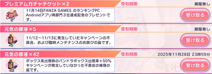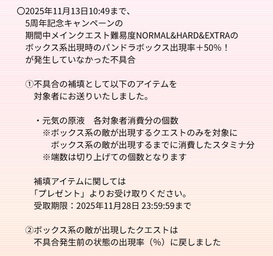 | … | 24無念Nameとしあき25/11/14(金)18:01:32No.1366064895+>パンドラ確率の不具合の補填 |