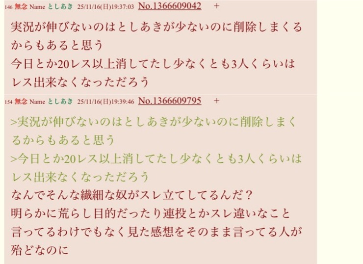 | … | 17無念Nameとしあき25/11/16(日)19:28:23No.1366606480そうだねx2>19:00:02したのになんでこの豚引退しないの? |