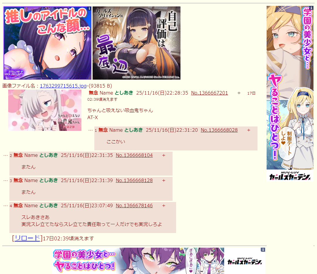 | … | 2無念Nameとしあき25/11/17(月)00:00:18No.1366690769+またん |