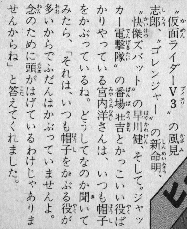 | … | 75無念Nameとしあき25/11/17(月)10:32:53No.1366738915+キイハンターで仮面ライダーV3役決まり降板しますって師匠の丹波哲郎に挨拶しに行ったら師匠は宮内洋がスーツアクターやるものだと勘違いして顔出ないのにいいのか?って問いかけた話好き |