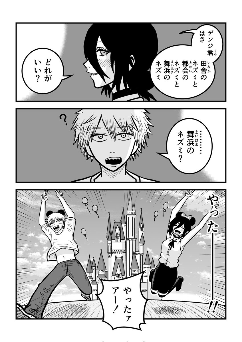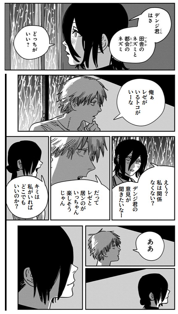 | … | 56無念Nameとしあき25/11/17(月)08:58:15No.1366728947+デンジが都会のネズミがいいって答えてレゼ夢から醒めたんだっけ |