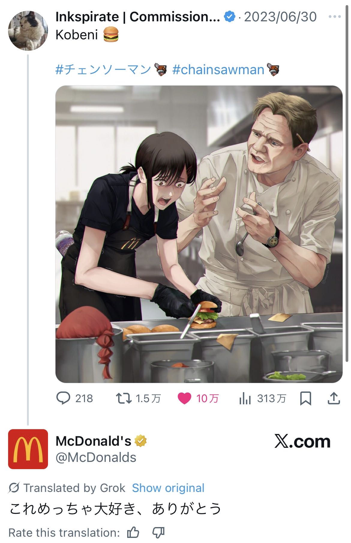 | … | 704無念Nameとしあき25/11/17(月)17:01:24No.1366795443+>自分が描いた作品を高品質に仕上げた映画スタッフと解釈広げた曲お出ししてきた米津に一番ビビったのが作者だと思う |
