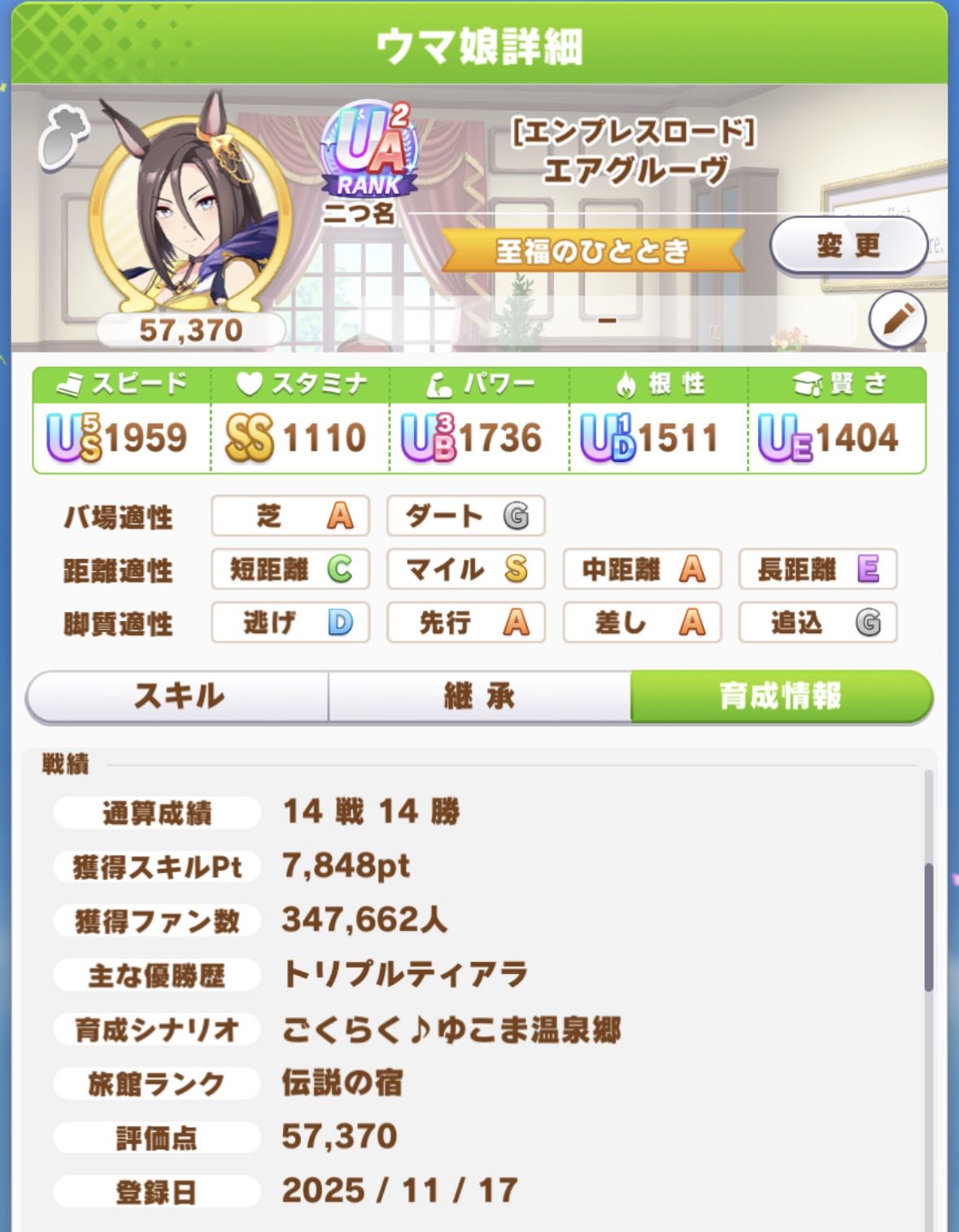 | … | 37無念Nameとしあき25/11/17(月)13:12:08 ID:/8VyLC3.No.1366762698+温泉のバフ効果とか券の枚数とか諸々考えるとシニア9前に落ち着くんですが |