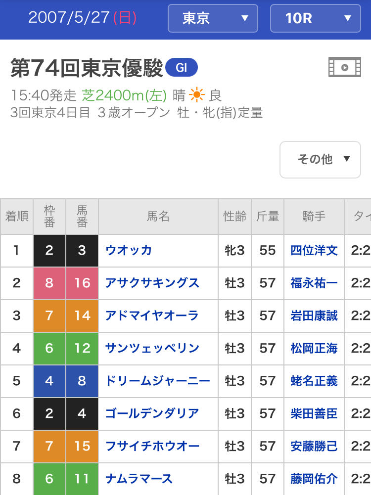 | … | 92無念Nameとしあき25/11/17(月)16:00:27 ID:t5mZA5jANo.1366786662そうだねx1 1763362827026.jpg-(125206 B) なおロイヤルホープちゃんが走った時の現実のダービーはこうですわ |