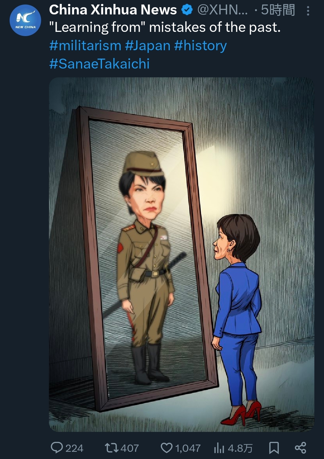 | … | 82無念Nameとしあき25/11/17(月)20:00:09No.1366834698そうだねx4なんか中国の機嫌を取り続ければ戦争回避できると思ってる人いるよな |