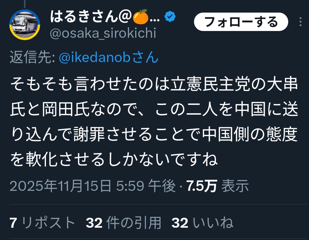 | … | 92無念Nameとしあき25/11/17(月)20:02:05No.1366835224そうだねx8中国のご機嫌を取るほど |