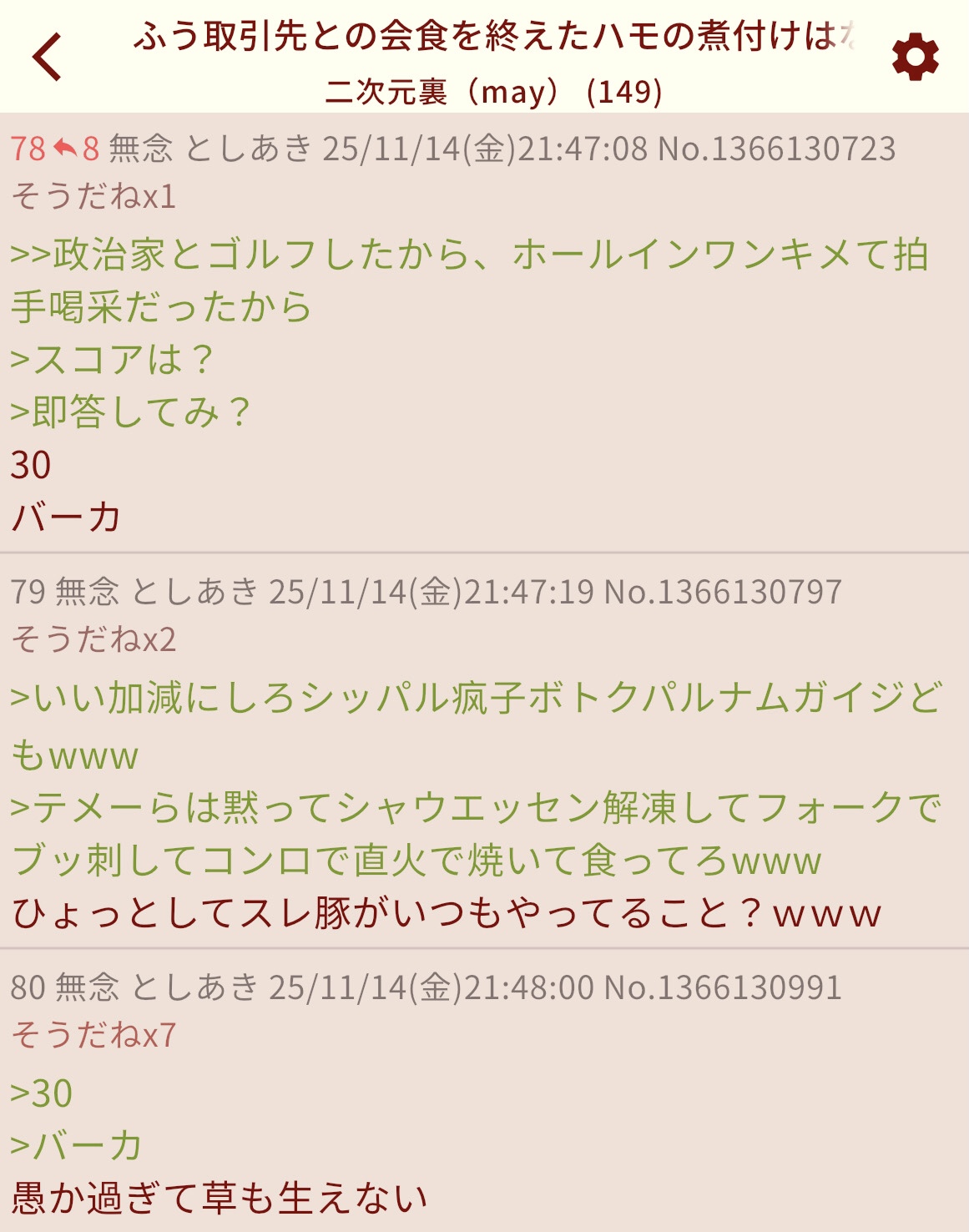 | … | 25無念Nameとしあき25/11/17(月)19:52:30 ID:OgqdZlHgNo.1366832531+バカ出てけ |