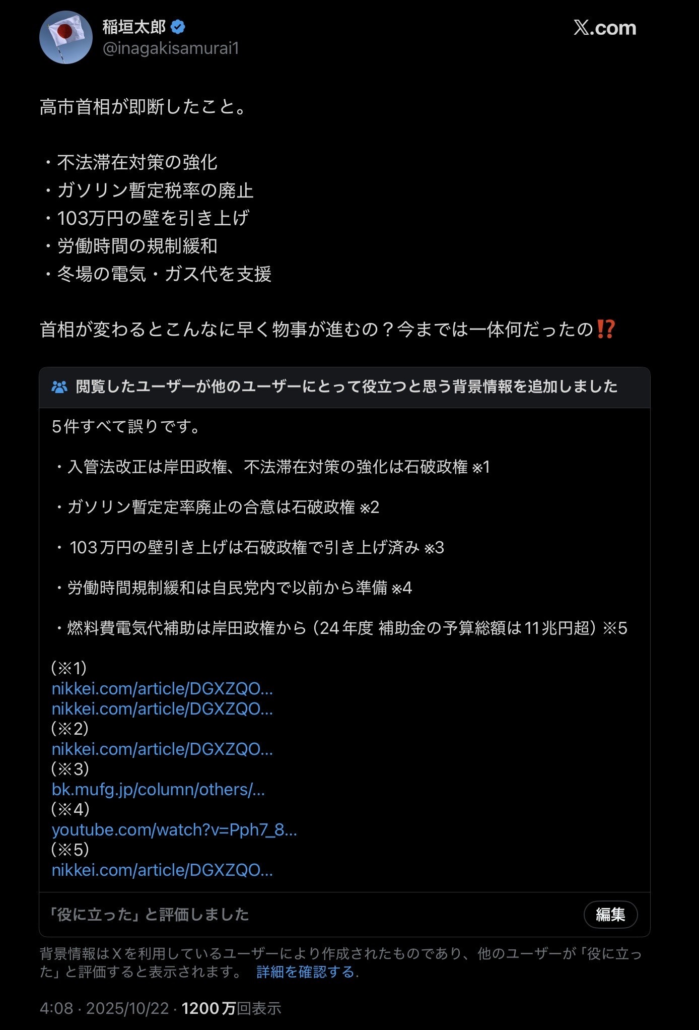 | … | 466無念Nameとしあき25/11/18(火)12:47:25No.1366966133+高市にはがっかりだぜ!(石破の時に決定した事象について) |
