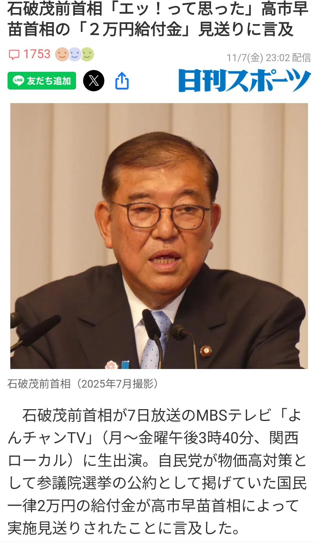 | … | 83無念Nameとしあき25/11/18(火)08:16:26No.1366930813+2万円貰えるなら石破さんに…ってなるかーい |