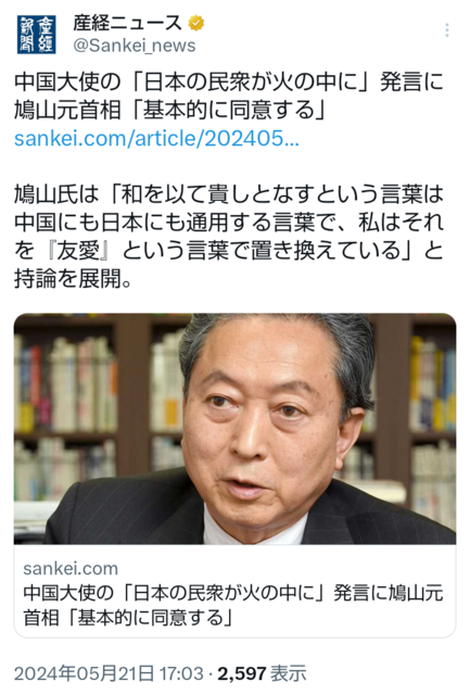 | … | 511無念Nameとしあき25/11/18(火)13:19:43No.1366972330+>やはり中国が支持するような政党はダメだな |