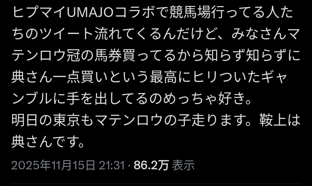 | … | 272無念Nameとしあき25/11/18(火)17:50:32No.1367012675+>サイゲとアメリカ競馬はズブズブぽん |