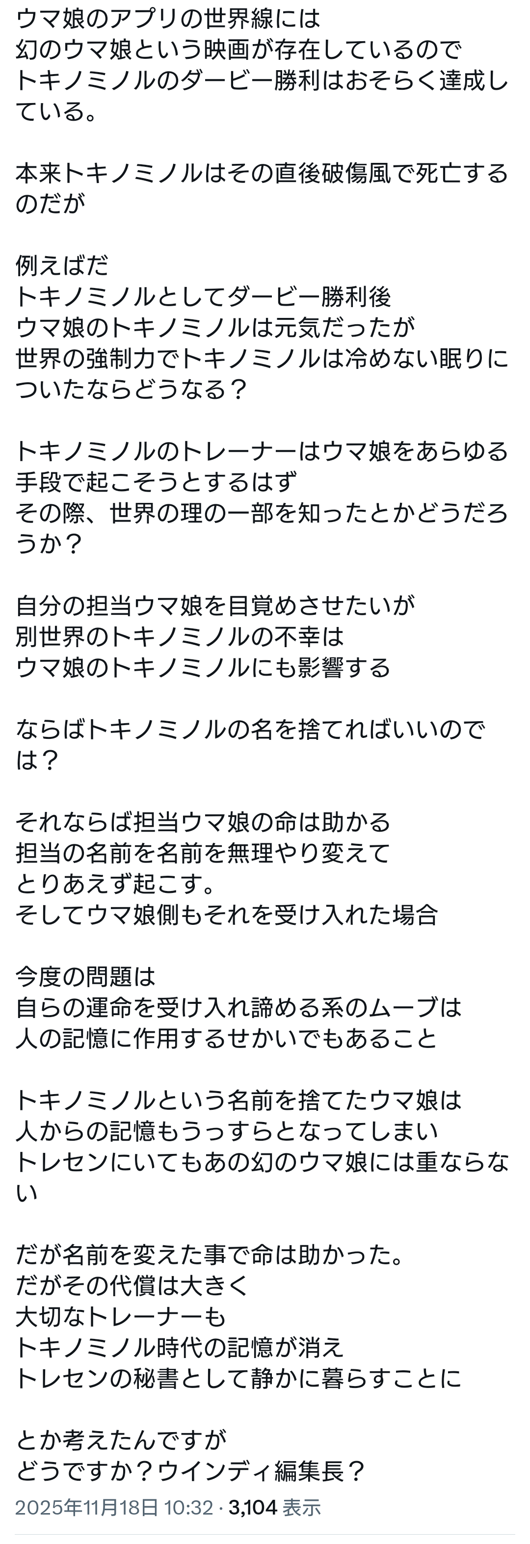 | … | 245無念Nameとしあき25/11/18(火)15:21:35No.1366990256そうだねx3 1763446895109.jpg-(194038 B) https://x.com/umagasukidesuyo/status/1989660166724489462?t=eXTOxF1rodTmvlPRSd3kkg&s=19 [link] |
