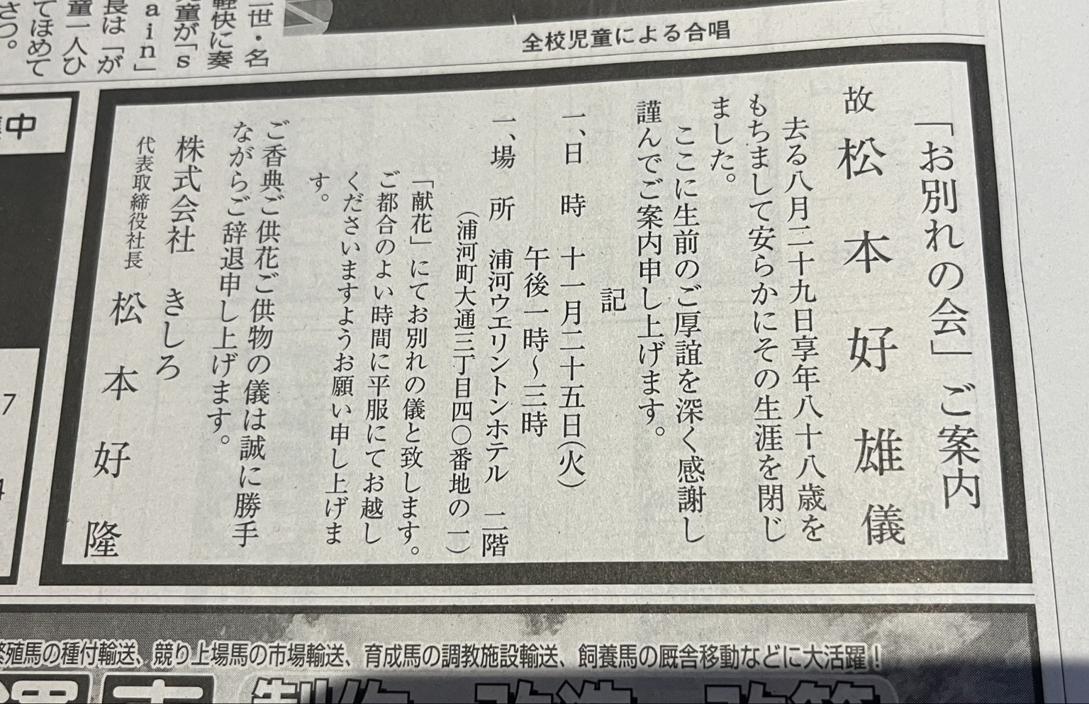 | … | 48無念Nameとしあき25/11/18(火)10:40:22No.1366946329そうだねx13 1763430022346.jpg-(543118 B) 浦河でも来週に松本オーナーのお別れ会が行われるみたいポン |