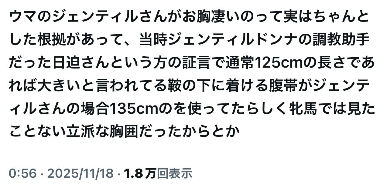 | … | 241無念Nameとしあき25/11/18(火)15:12:55No.1366989039+ジェンティルは胸郭がデカいぽんか |