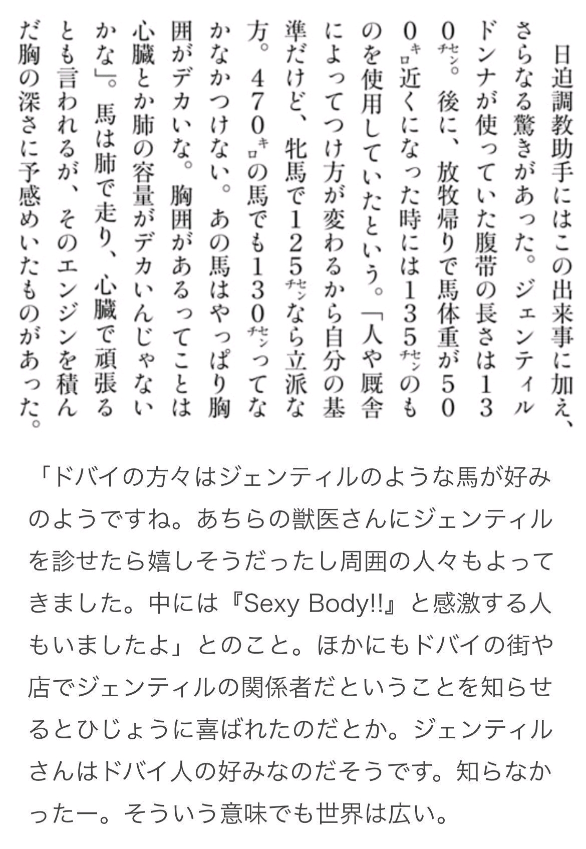 | … | 243無念Nameとしあき25/11/18(火)15:17:40No.1366989693+>ジェンティルドンナの馬体については色んなエピソードがあるポンね |